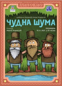 Premijera predstave “Čudna šuma”, u režiji Ivane Koraksić, biće odigrana u pozorištu lutaka “Pinokio”, u četvrtak 10. juna 2021. od 20 časova. Prva repriza zakazana